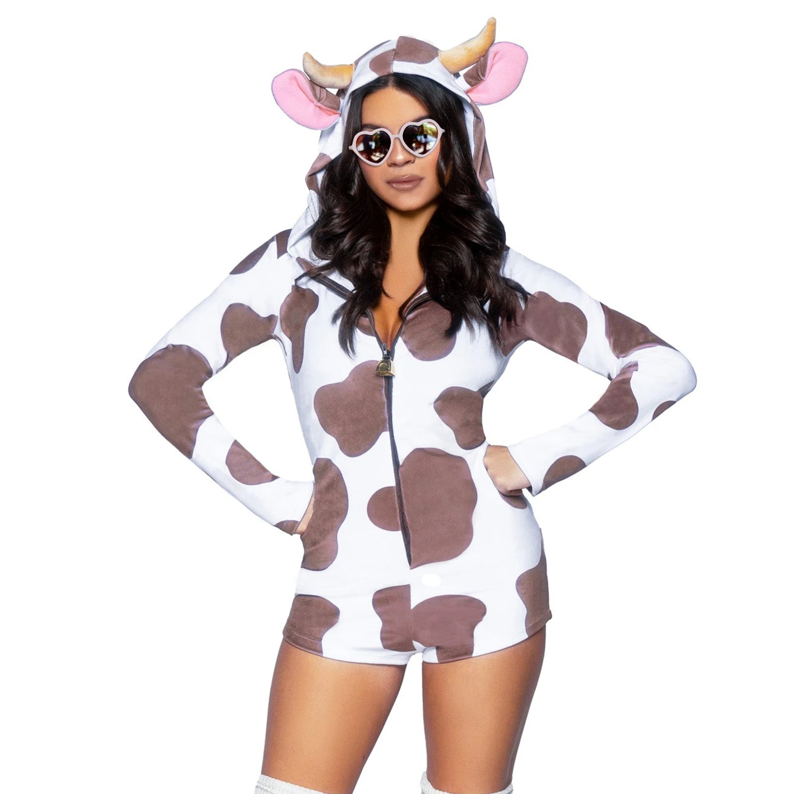 Hooded Cow Costume Romper for Women | Rave Set