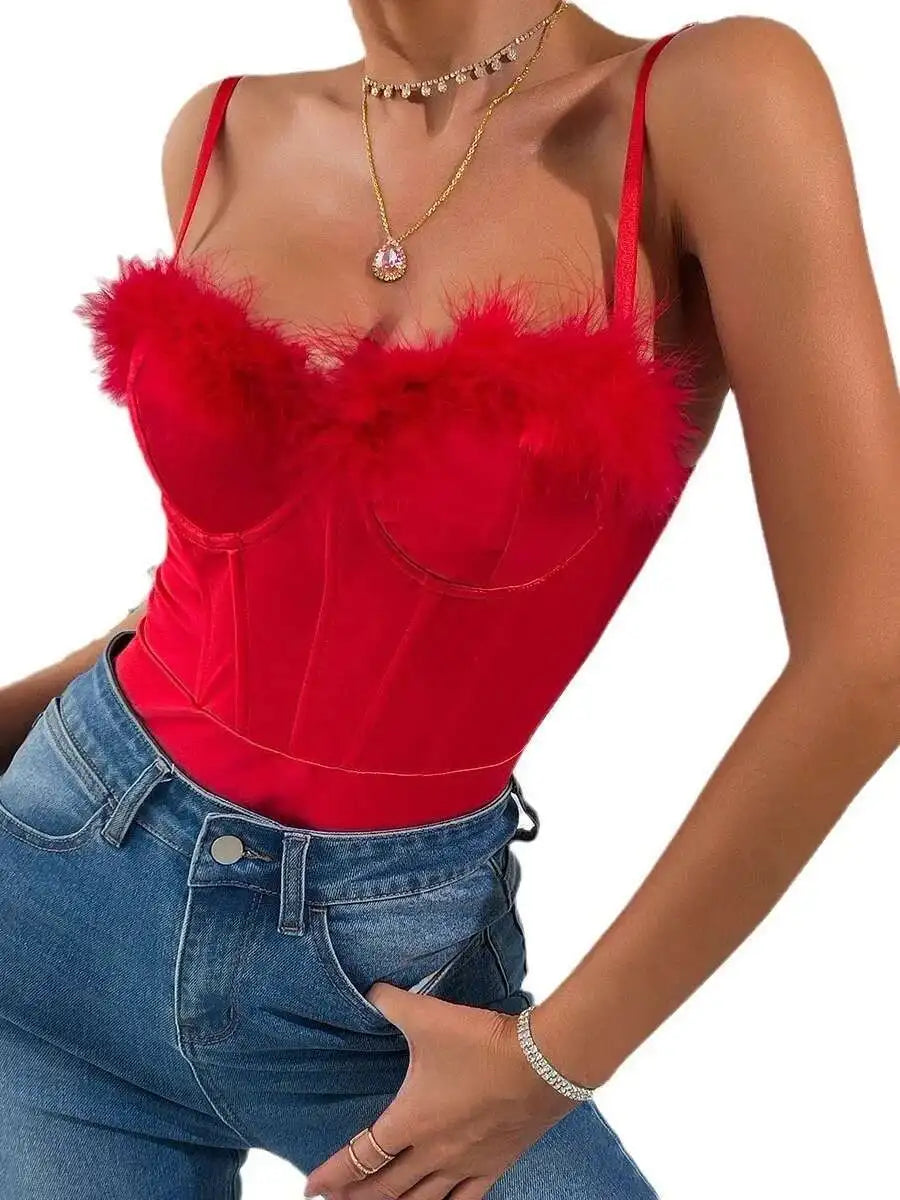 Step into a vibrant, expressive look shaped by rave outfits, rave clothes, and festival outfits. The Red Velvet Kiss Feather Bodysuit from Rave Set blends a smooth, satin-style surface with feather trim suited for rave outfits women choose when exploring bold, color-focused rave fashion. Its streamlined silhouette and clean upper shape align with modern festival styling in a polished, minimal way.